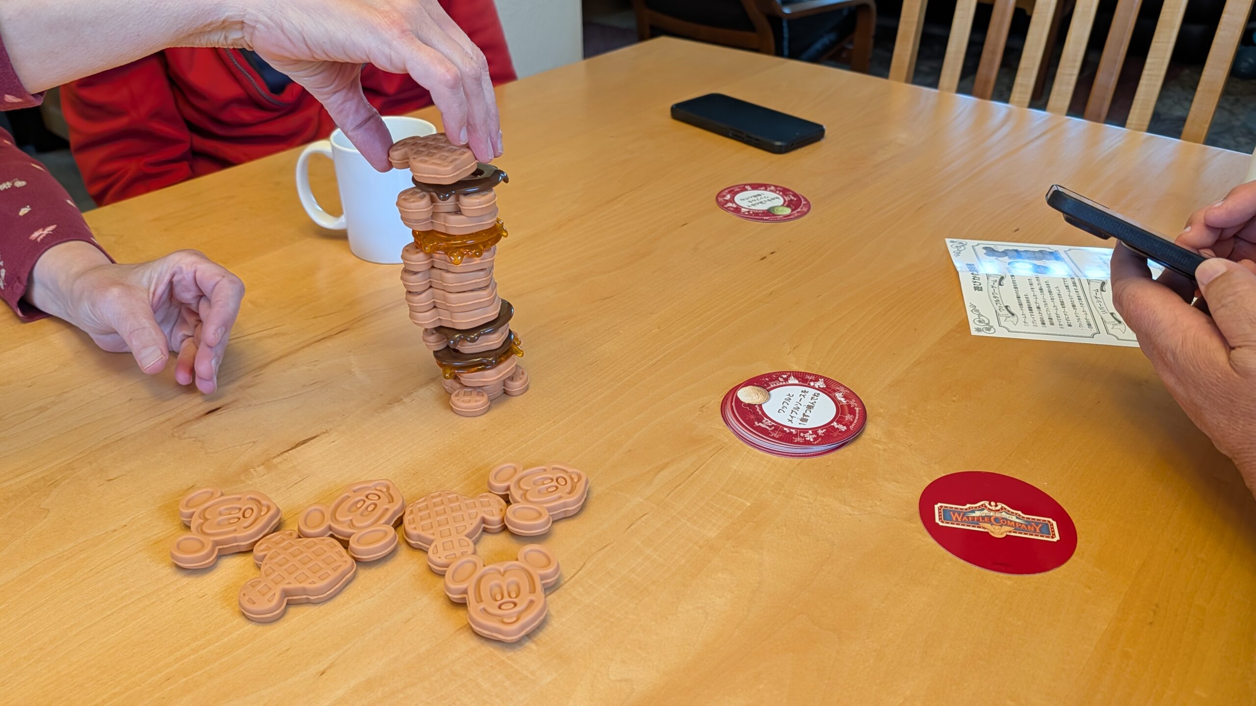 We had a dinner and game night at the Wickerts. We bought a new game – Mickey Waffle Towers – at Disneyland and we took it along to play. The directions...