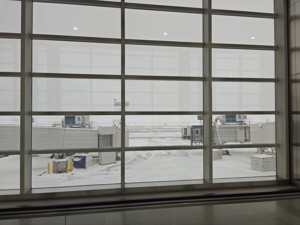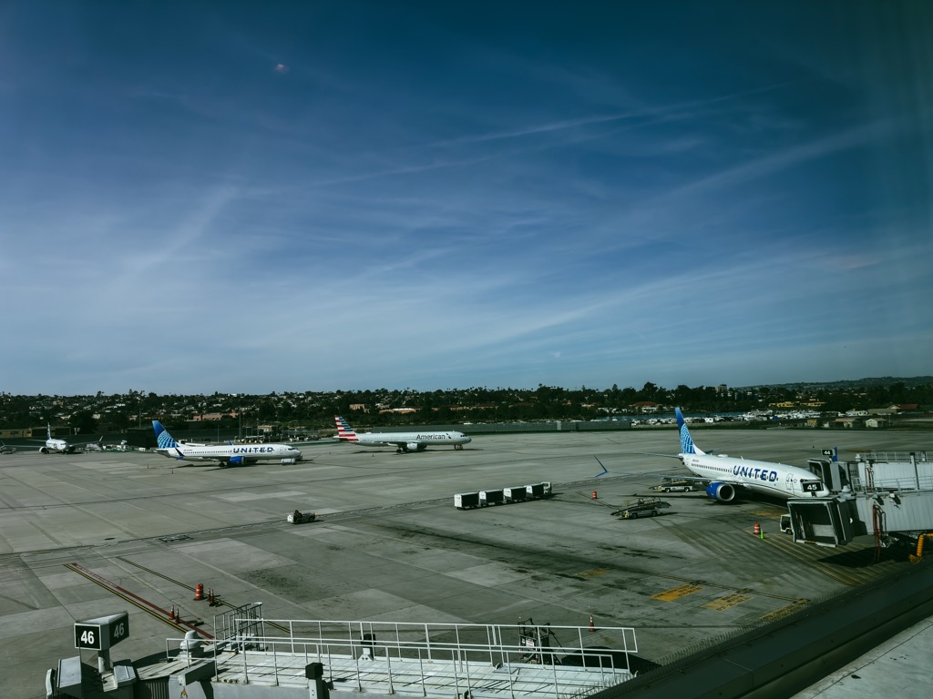 Daniel and Amanda fared better. They drove their rental car back to San Diego and flew home from there without incident (and got to spend a little quality time in the lounge at that airport first). The view out of the windows of the Detroit and San Diego airports were, umm, not very similar.