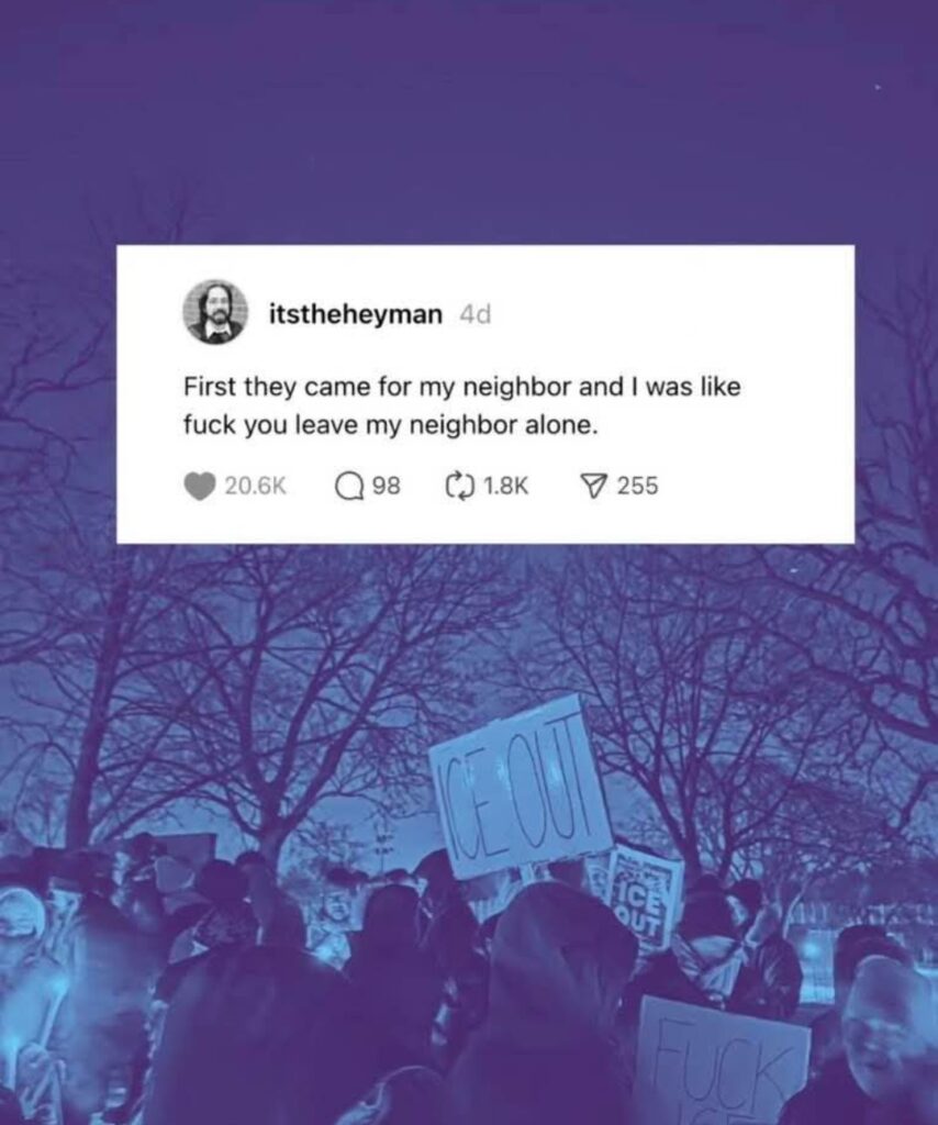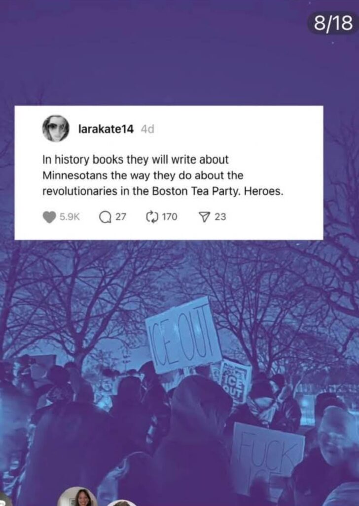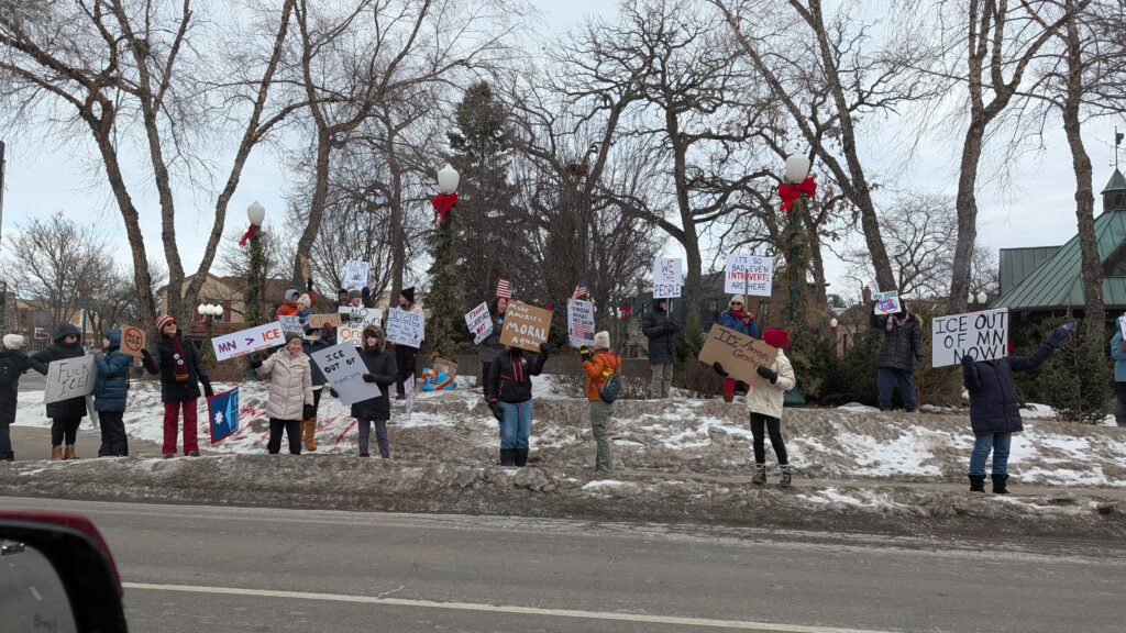 On our way to the theater in White Bear Lake, we saw a block of good Minnesota citizens. I was so busy yelling at Keith to honk that I didn’t get a good picture of how many people were out. Good job, people!