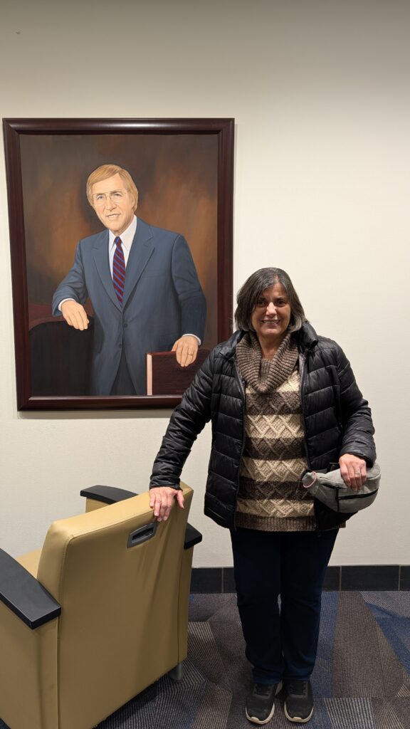 Tom and Louise went with us to West Side Story tonight. It was the best of the three times I’ve seen it. We were closer to the trumpets, so we could hear Keith better than I have been able to. Louise posed by a former college president, so I could send the picture to the sisters, and they would feel like they were there again.