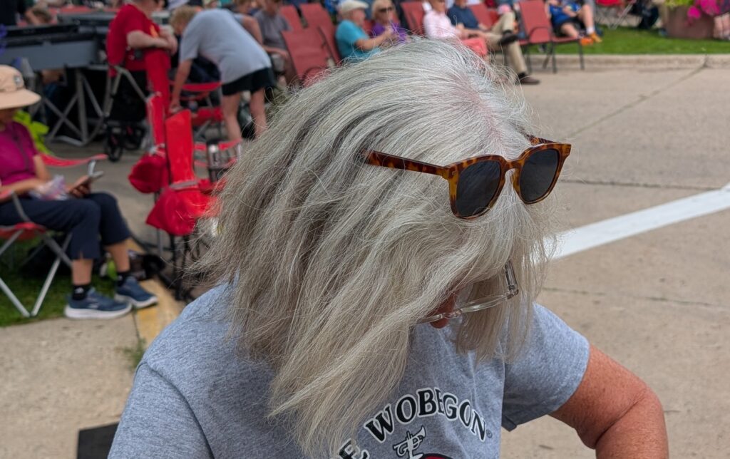 We had the second worst air quality in the world yesterday. Canada is on fire and the smoke has been floating down. Poor Canada. The weather was wonderful – hot in the sun, perfect in the shade. We went to Vintage Band Festival for Keith to play with Sheldon band at 10 and Lake Wobegon at 3, then on to River City days in Red Wing for another concert with Sheldon. Jenny was playing all three as well, so we decided we would have a leisurely lunch indoors, out of the smoke.