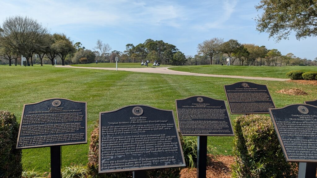 We visited Pine Hills golf course, designed by Robert White (Bob White!). The clubhouse was lovely. The SC golf hall of fame is outside on bronze plaques.
