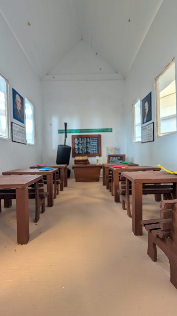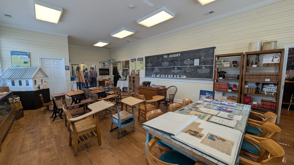 The original Colored School opened in 1932 by black families who felt their kids needed a school. It closed in 1955 and eventually fell into ruin. When the road was widened, it ended up in the middle of the street. Former students tried to save it for a museum, but it just disintegrated when they thought about moving it. Land nearby was donated and a replica was built. Artifacts from the actual original as well as items from the time were collected for the museum. The building also houses a collection of information about notable black people.