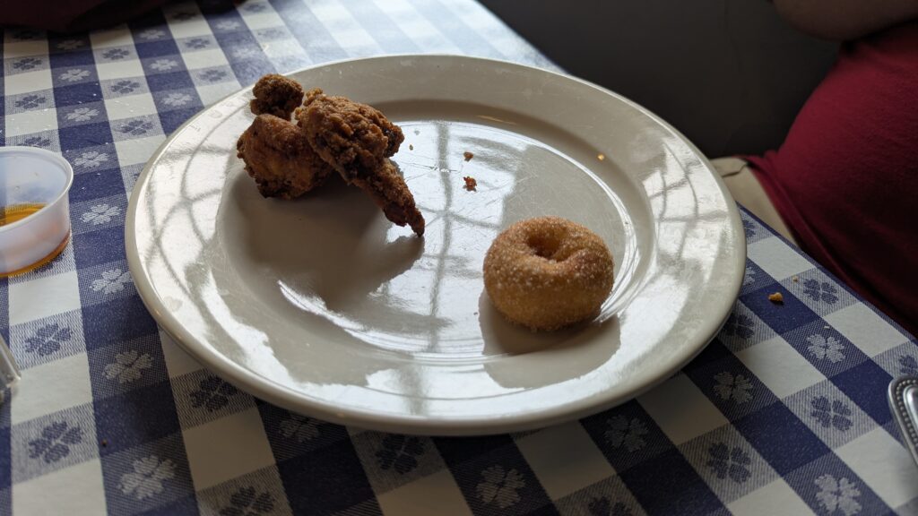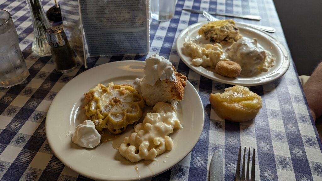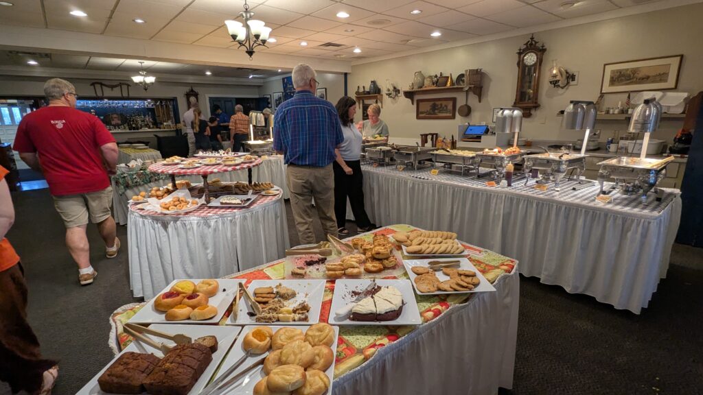 It was 1:00pm and we were hungry. We went to the Ox Yoke Inn for the Father’s Day buffet. It was delicious. It had everything we could possibly have wanted – including pavlova with whipped cream and fruit.