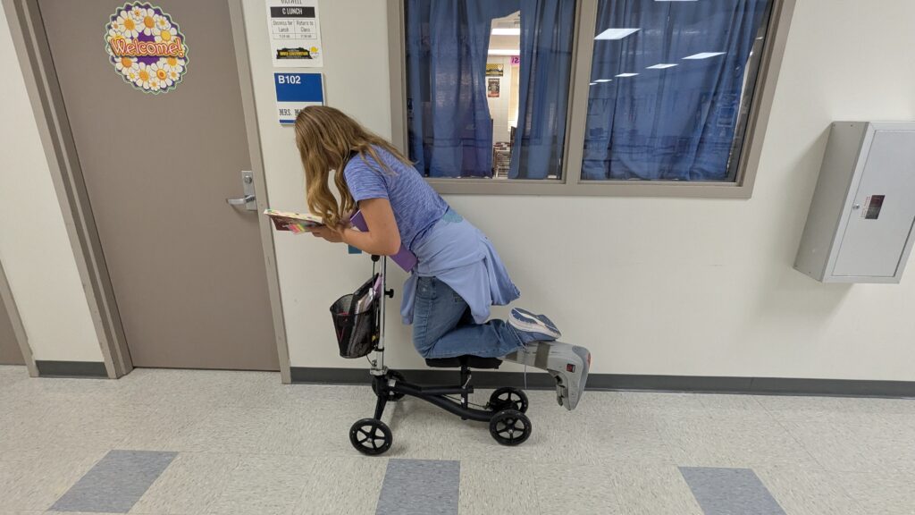 Two good pictures today. This one AT school – I figured she was really just using the rolly thing so she had a comfy place to read. Smart girl.