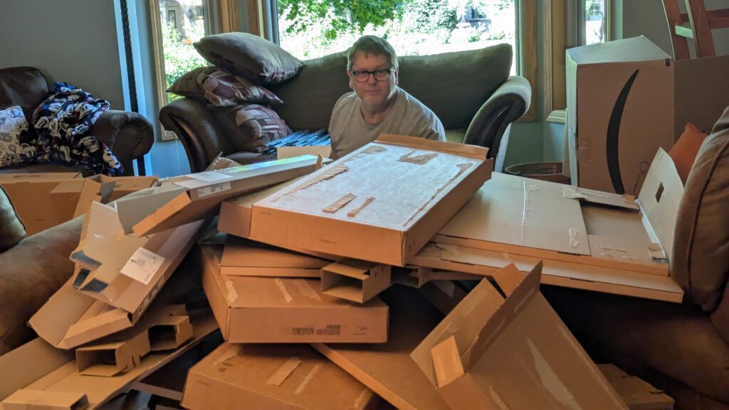 The POTD is AFTER school–Keith started putting together the new IKEA.