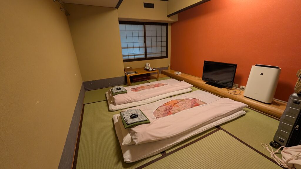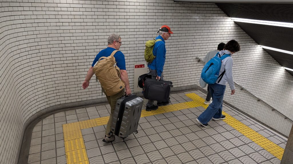 We retrieved the bags and trained to Kyoto. We are staying at a more traditional style Japanese hotel here. We don’t have a shower in our room, so we are supposed to use the common baths. Hmmm. That is not really our style. I checked on the included breakfast – it is fish, miso soup, and some other things I won’t eat. I’m looking forward to 7-11 already.