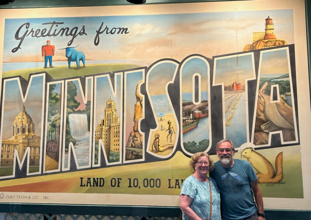 We met Brad and Regina on our cruise to the Amazon in February 2023. We enjoyed their company so much – it was the high point of the trip! We told them if they were ever in MN to let us know – and they did! They were in Indiana at a wedding last Saturday and have been touring along the way to us all week. We are so excited to host them – if only for a night. We leave for Bucharest tomorrow and they head to Rochester (they are from Rochester, NY, and obviously need to see our Rochester). We went to the History Center tonight – hence the POTD.