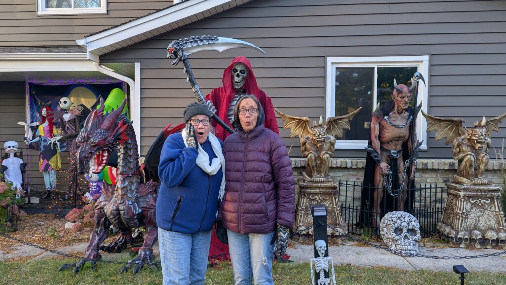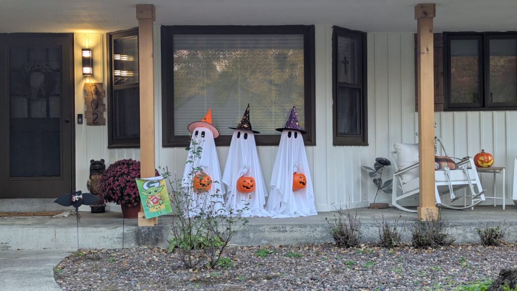 I found these ghosts. I think they are Donna, Nancy, and I. I can’t decide who has the orange hat – me because I’m usually out in left field or Donna because of extra style or Nancy because she thought it was so cute? Nobody knows.