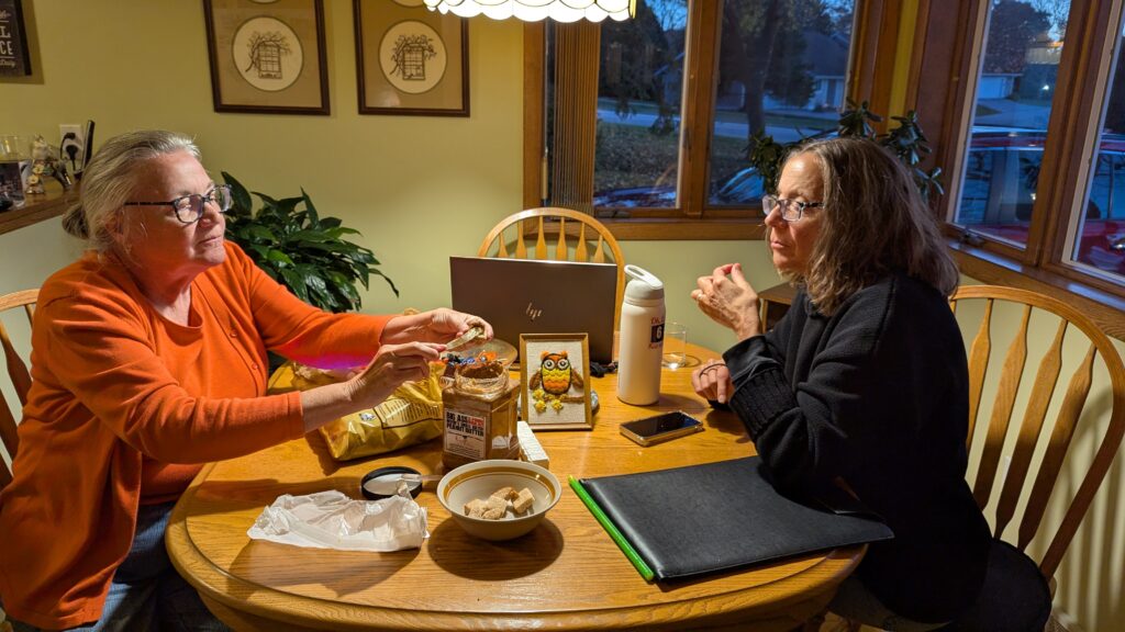 Keith worked on finishing a board he never finished a couple years ago while doing Nancy’s bathroom. David came over. We had tortellini for supper and played Flip 7. David won most, Keith won once, Nancy and I were there. Donna was on a face phone call with Will – while Emma is a couple miles away at an art teacher conference. Kids!