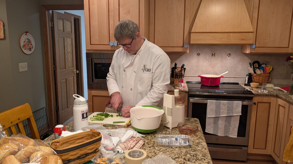 We’re having two parties – one with the guys and one with music friends. I made the grocery lists and really checked them twice. There are different menus, so there was a lot on the list. We shopped for three hours at Sam’s and Cub. We came home and cooked. I smashed my fingers with something heavy at one point and Keith kindly said, “What happened?” I was busy squeaking and gritting my teeth and hopping up and down and I didn’t reply. He repeated, “What happened?” and I let all his kindness have it. “WHY ARE YOU ASKING WHAT HAPPENED WHEN IT IS OBVIOUS I AM BUSY FREAKING OUT?”