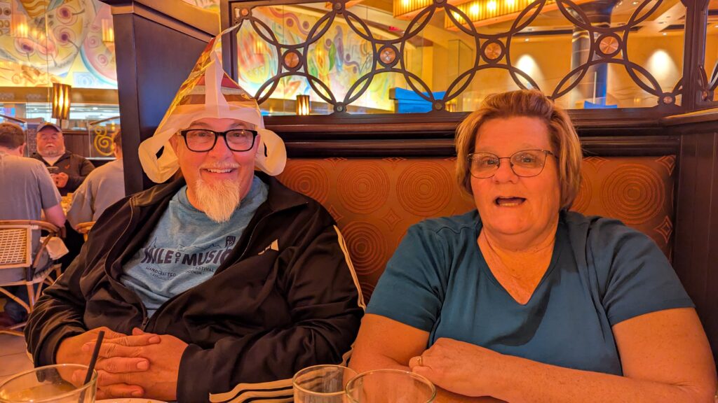 We haven’t been to CF in a long time and it was so good. Gary and Julie came up from Edgerton and we had a wonderful time. Julie said she wasn’t going to use the bag they gave her for her to-go bag, so Gary did. 🙂