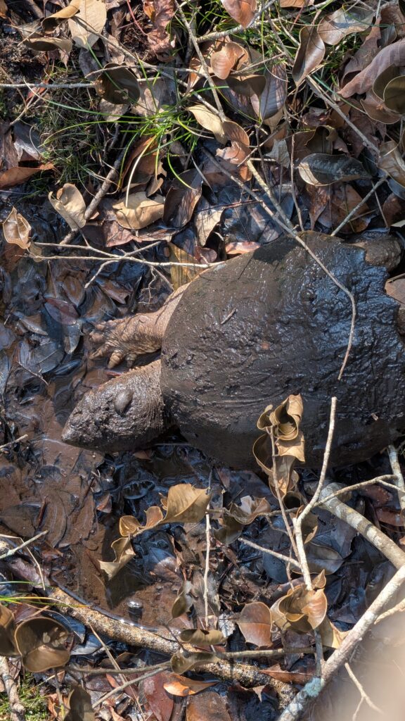 I read all about the national park over the past couple of days and the possibilities of snakes and gators. WTH. I didn’t even know alligators lived in South Carolina. I was less concerned about the gators than I was reading about the snakes. Snakes are sneaky and suddenly they are there and you are screaming and running and the whole situation is bad. We were at a traffic light and Keith said what are you thinking (he says that a lot and I always tell him, then he says what? why? I always think he should just stop asking) and answered honestly, “Snakes and Gators!” He looked everywhere for a sign. There was no sign. I was just thinking that if snakes were suddenly there, I would scream and run and likely run toward an alligator, because that would be my luck, and he asked. We ended up seeing no snakes or gators. We did see a snapping turtle that crawled out of the leaves, making a lot of rustly sounds so we knew to look. We stopped to see what others were looking at several times and it was a squirrel. Seriously. A squirrel. Are there places without squirrels that these people could have come from? I said there are black, red, and grey squirrels in my yard – hardly a thing. One lady said that is how she feels about deer. Where are there plentiful deer and no squirrels? I do not know. One group was looking at something they thought was a brown smudgy (that might not have been the name. It was something brown) It was a bird and they weren’t sure where it was. I walked on. If it wasn’t a gator or a snake, I kinda wasn’t there for it.