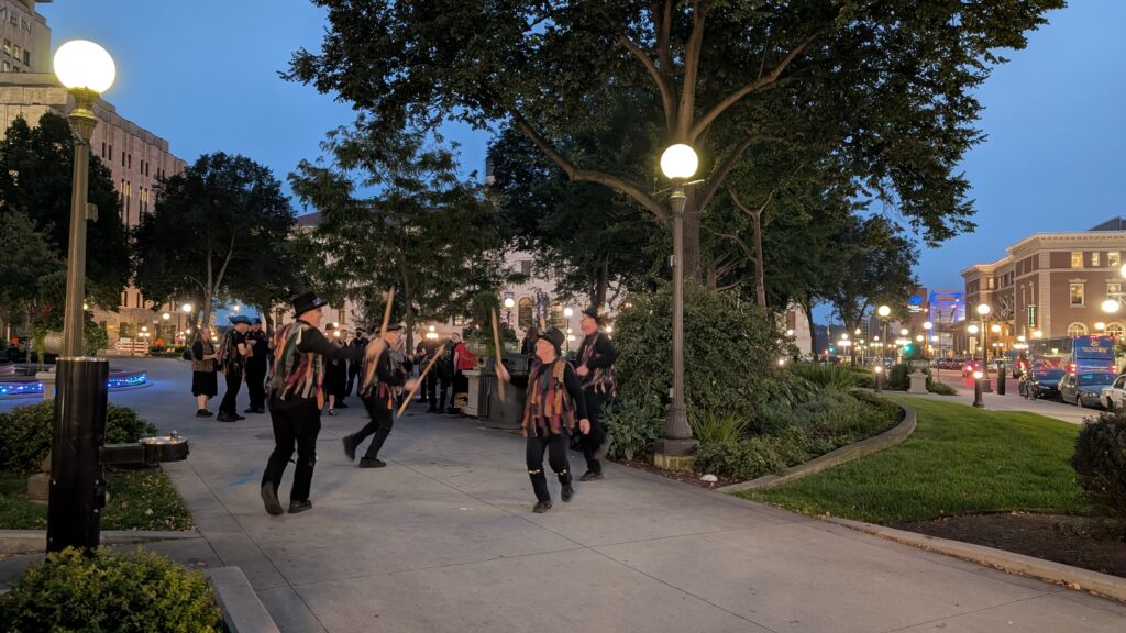 I think those dancing dudes are “Morris Dancers.” Something you see in England (the British folks make fun of them a lot), but not in Minnesota or pretty much anywhere else in the U.S. Maybe they’re British and just trying to escape the harassment.