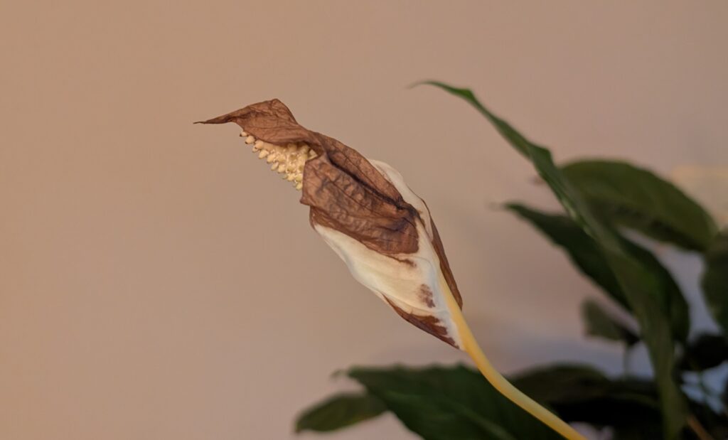 The picture of the day is of a wilting flower on our peace lily. Keith thought it looked like a hummingbird. I thought that was fun.