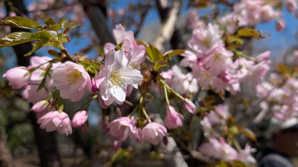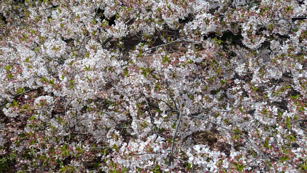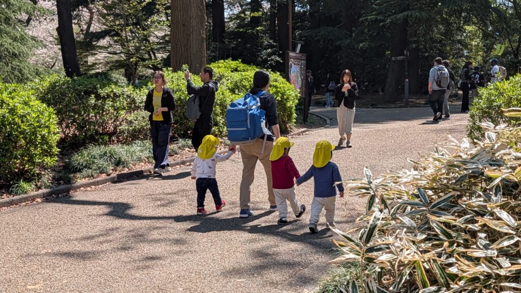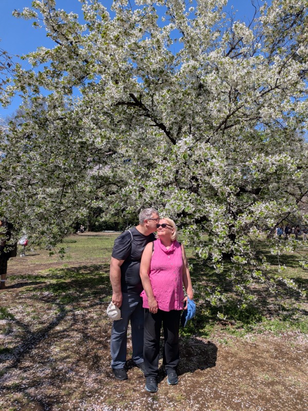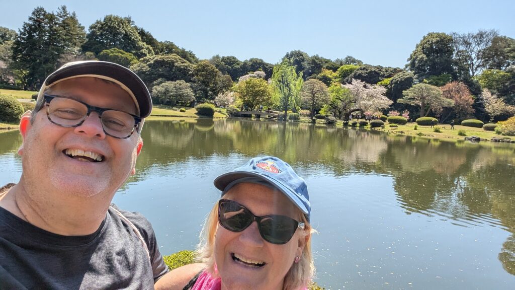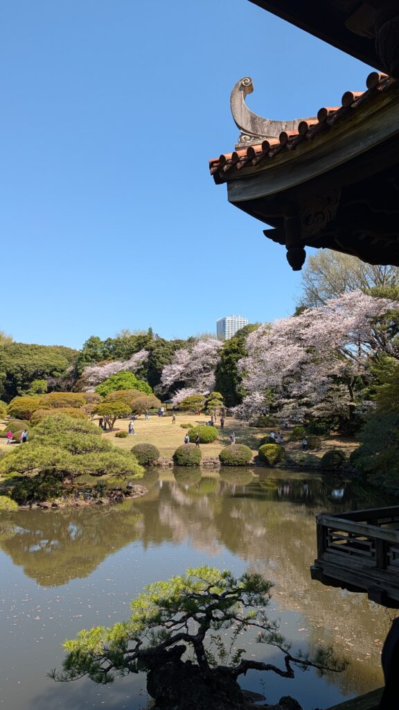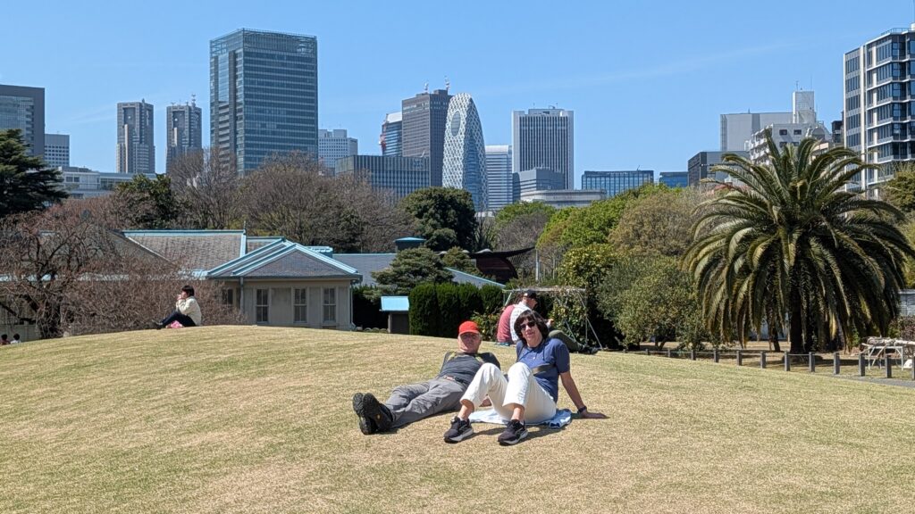 We went to the Shinjuku Gardens where they have 11 different kinds of cherry trees and 700 of those trees. It is amazing to be here during the cherries. I don’t know what is more fun: just seeing all the beautiful blossoms or seeing how excited everyone is to be out among them.