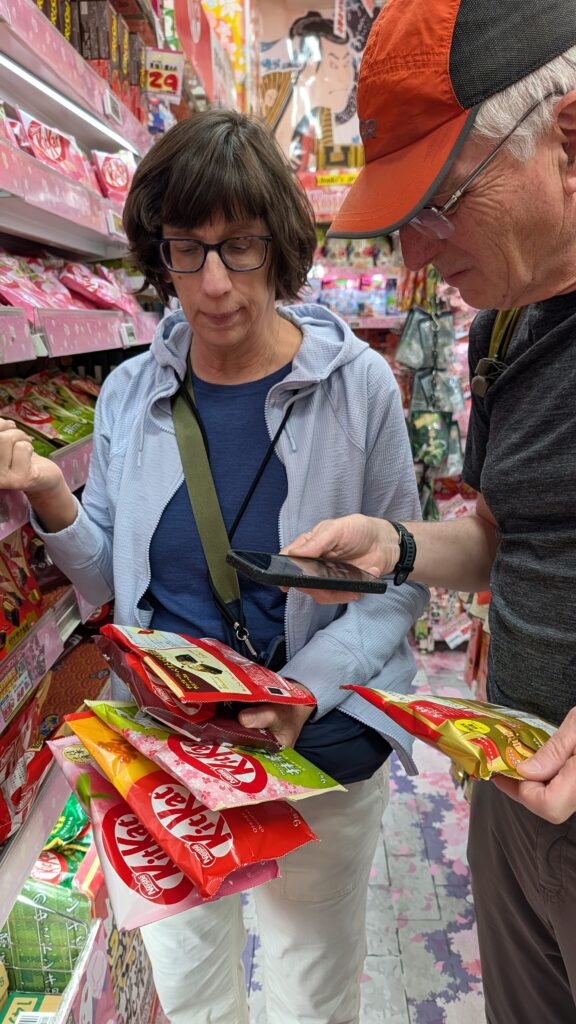 KitKat shopping is complicated. There is not very much English around Tokyo like the other towns. We are thankful for phone translators.