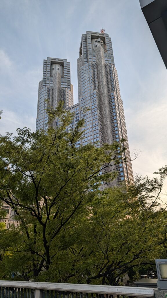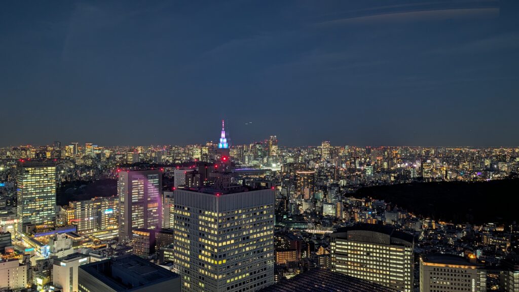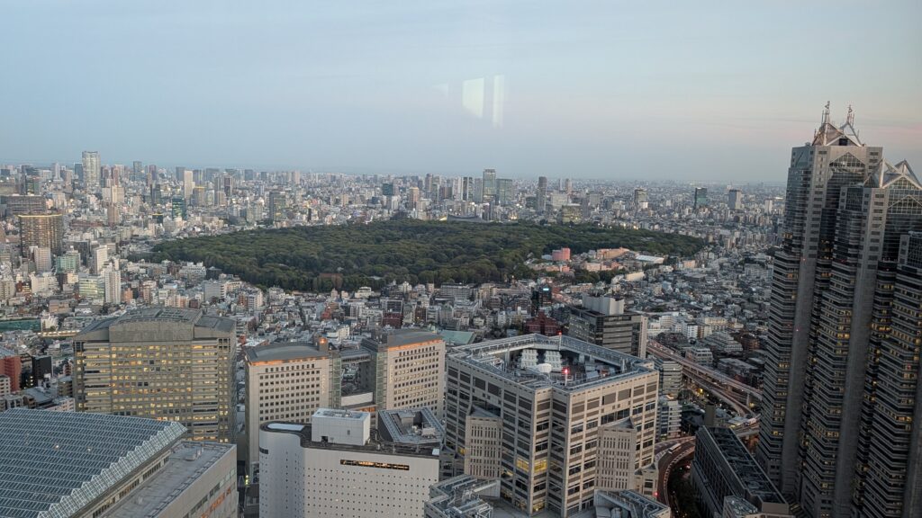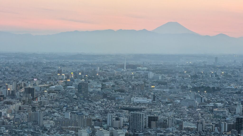 Mike found a hidden gem that there was a free observation deck on the 45th floor of a big building. It took us a little while to find it, and it took us quite a while to wait in line for the elevator up to the top. Almost exactly 50 minutes after we got in line, we were up on top. We got our first glimpse of Mount Fuji in the distance before the sunset. That was nice.