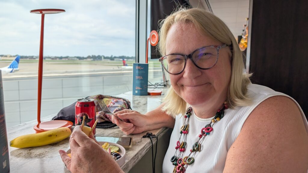 We had a lovely breakfast with Regina and Brad before they left for a day in St. Paul and Minneapolis. We had about an hour to double check luggage before Dave picked us up for the airport. Super quick trip through security had us in the Escape lounge in less than 15 minutes.