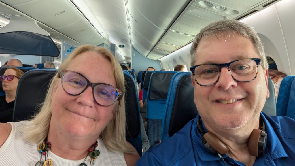 Keith upgraded us to economy comfort and they didn’t charge him. Don’t know why or how, but yay. Our seats were so much better than standard main. The person in the window seat woke us up to use the bathroom ( I had hoped she would go when we went and hour earlier), but, oh well. Not a problem until she didn’t come back. After 25 minutes I went to the back of the plane and she was stretching. I get that – but it was 2-2:30 am local time. I would have tried to sleep if I knew she wasn’t coming back. Then I felt bad for saying she should have told us. I was tired.