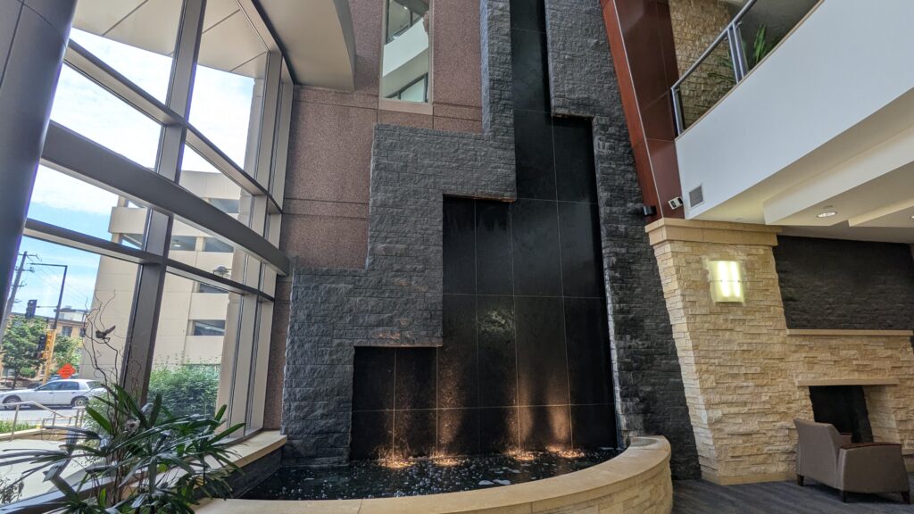 The POTD is the water feature in the lobby. I really liked it. I wonder if super rich people have water features in their house. I think that would be great.