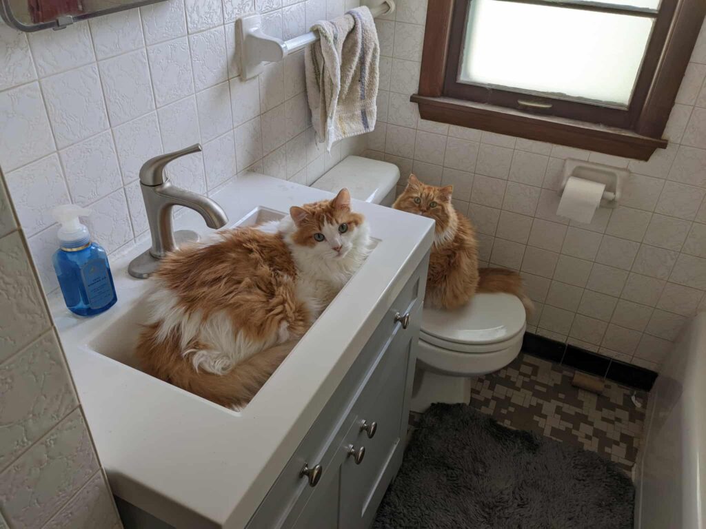 Here are Alexander’s kitties waiting for the sink to magically turn on.