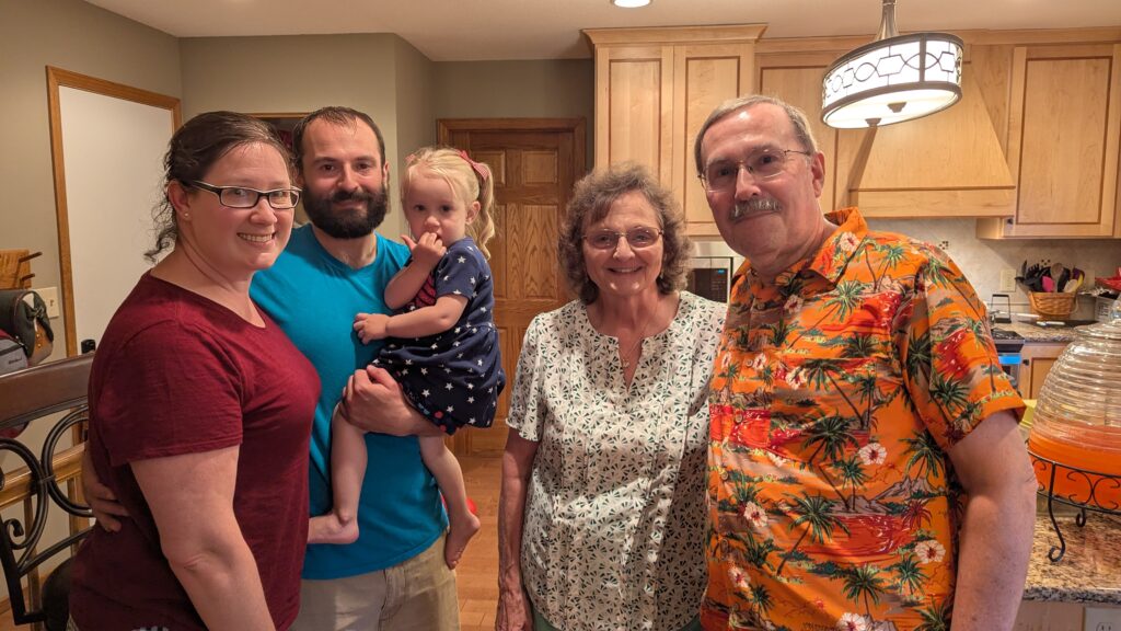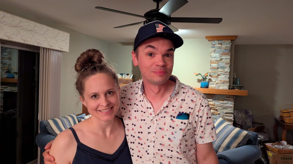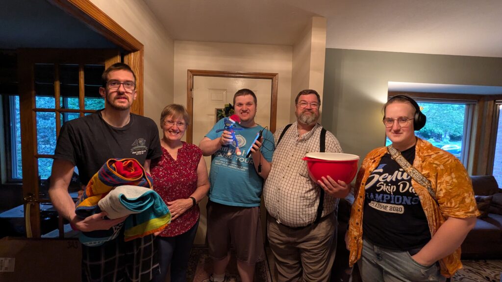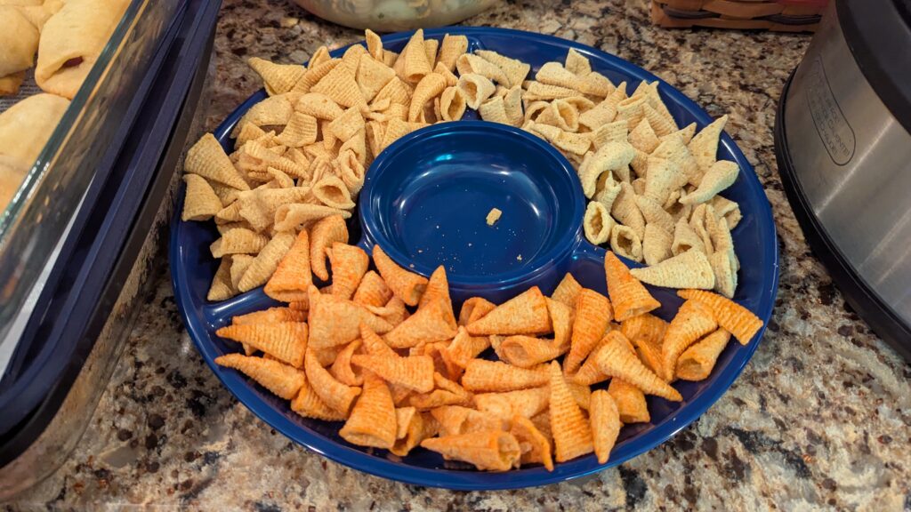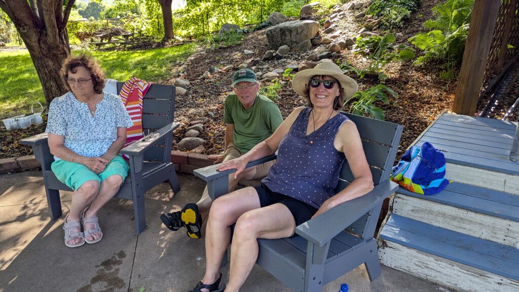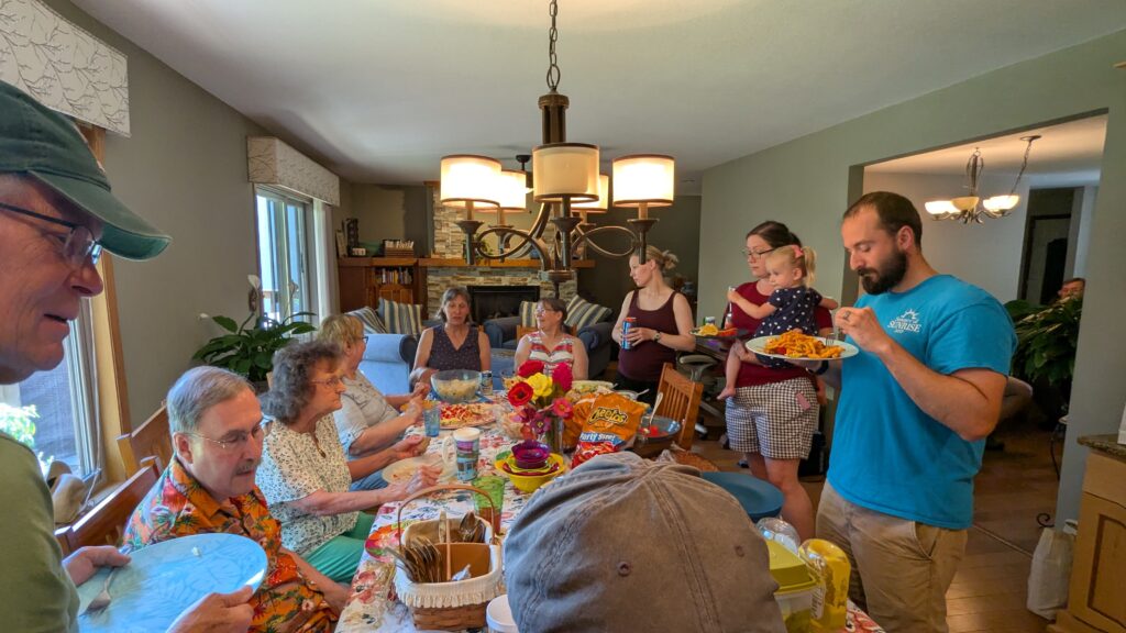 My sister, Donna, and Michael came to the party. We got hamburger and round buns so she could have a burger, because she does not like hot dogs. She said no no no, no extra work for me – there is enough to eat without a hamburger (there was). Then I turn around and she is dressing a Chicago hot dog. Mmm? Then she sat down and ate it. All of it. She thought it was pretty good. She thought maybe she had never had a hot dog. She really, really hates the smell of cooking a hot dog in water – dog water is the worst smell ever – so perhaps she just extrapolated her hate of hot dogs. I thought it was mind boggling.