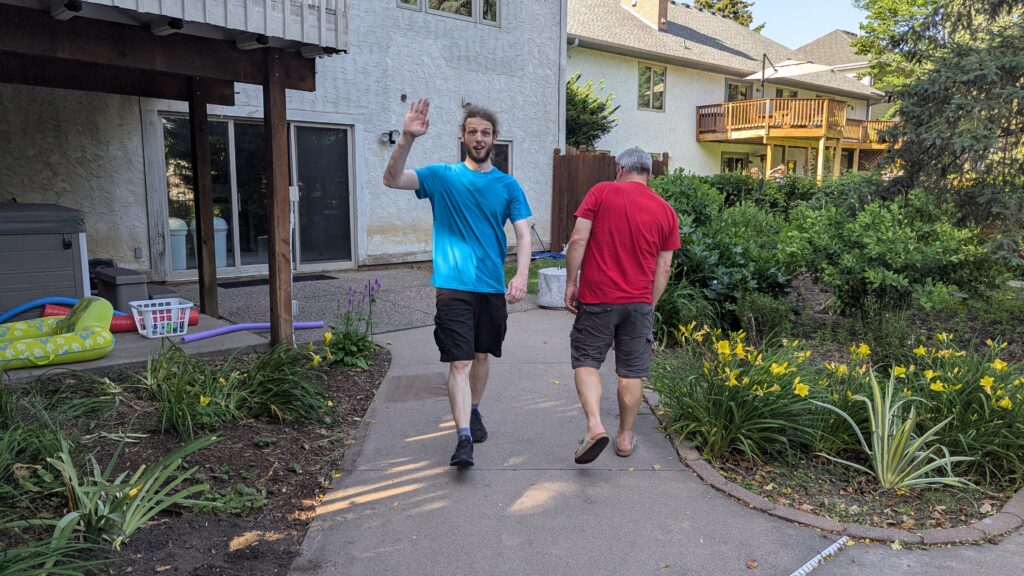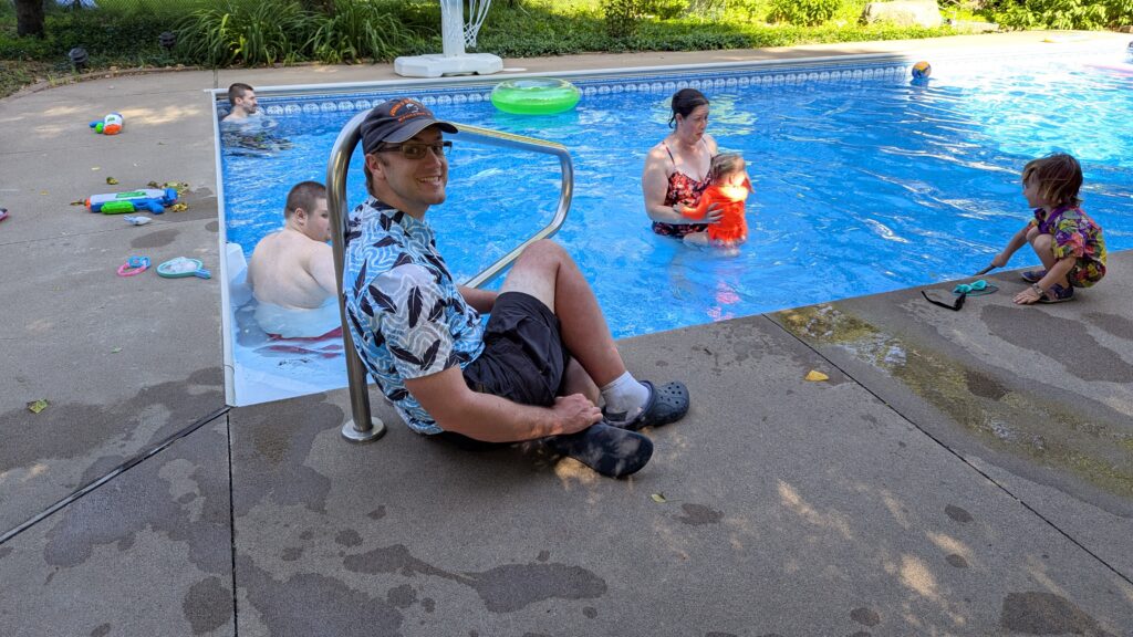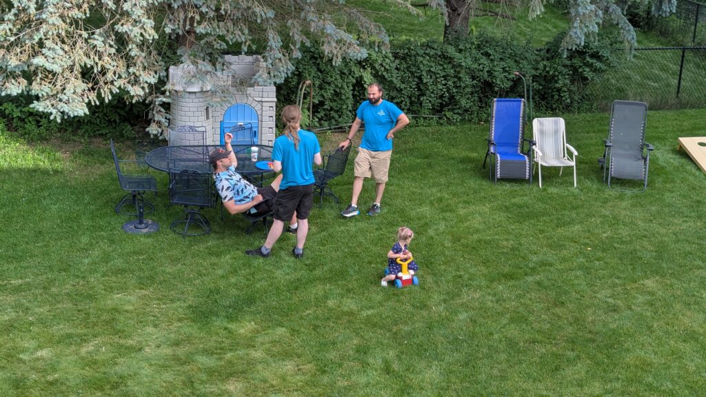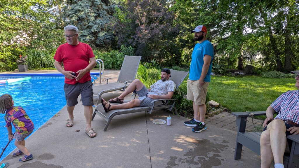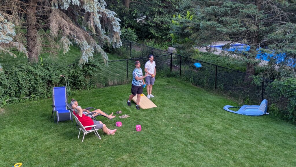 We mostly hung out in the new house, which was so much cooler than the outside. It is also really different than the old house. We started getting it figured out for a party. There was a little backyard activity.