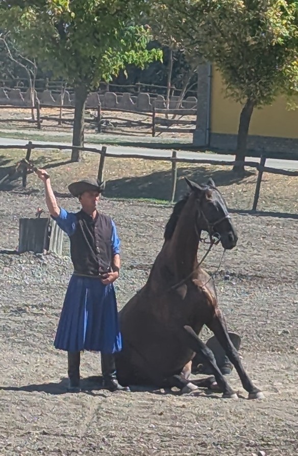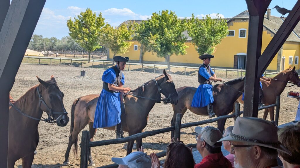 Our outing today was the best of the trip. First we went to a horse show. First were the trick riders – very cool. They were cracking whips and the horses didn’t care at all. They were trained for combat and wouldn’t flinch at the sound of gunfire.