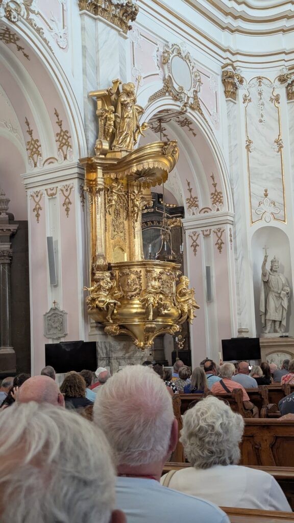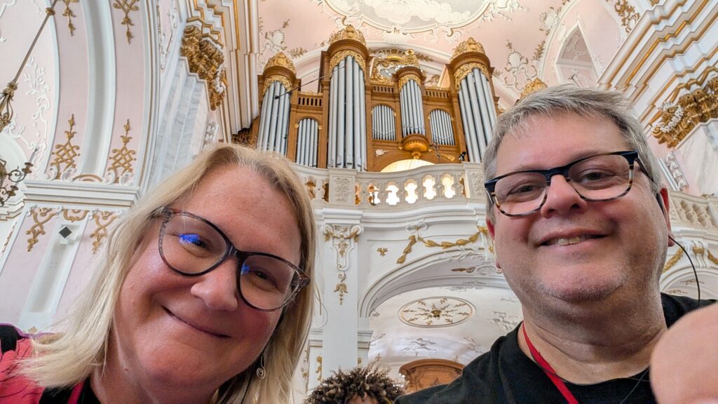 Next we went to St. Mary’s church for an organ concert. The second piece was a duet – organ and jack hammer. The last piece was Stanley’s Trumpet Voluntary. Keith had no horn. Huh