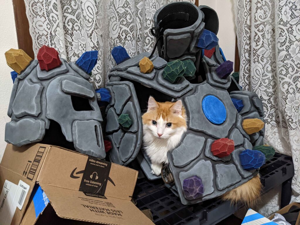 We ate delicious leftover pizza and watched the new George Clooney movie on Netflix. We did not take any pictures – BUT Alexander just sent a picture of Colby (in the cave of wonders and jewels) (or a gem monster costume). Enjoy his little self.