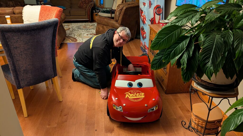 When I got home, Keith was building his car. It’s even cuter out of the box.