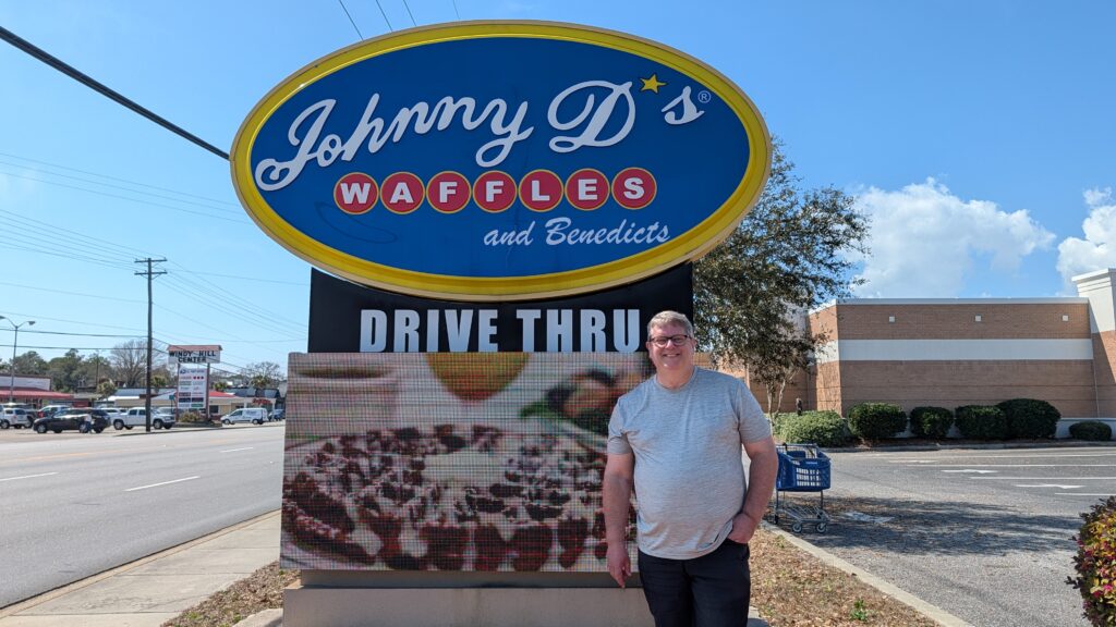 It was sunny fog again today for our last Myrtle Beach day. Keith has been wanting to eat at Johnny D’s since we got here (it was right by the entrance to our last hotel) so today was the day. Julie won with her order of a shrimp and crab omelet with creole remoulade, but everyone really enjoyed their meal.