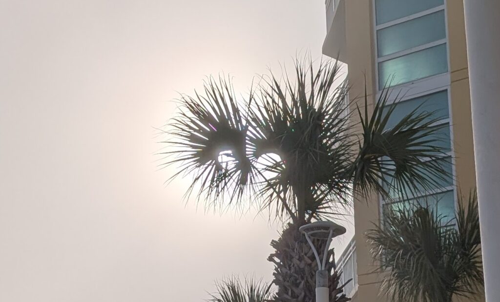 The sun was right behind the palmetto (state tree!) and looked cool. Cooler in real life than on the picture.
