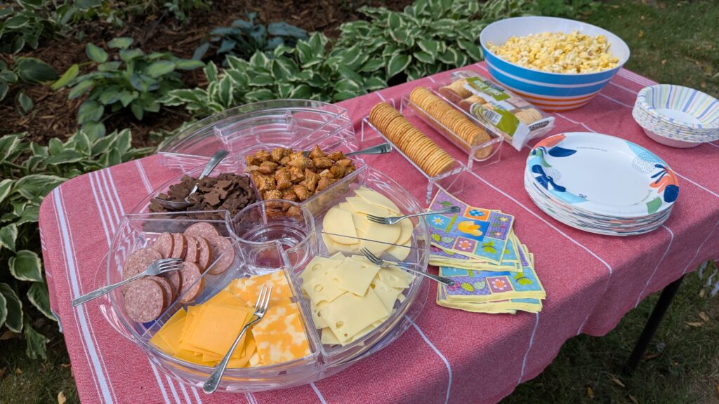 I went to Jean’s backyard today for a gathering of former Woodbury Junior High employees. It was delightful. Jean had taken snacks to a church activity yesterday and wanted to serve us leftovers, making sure that we knew we were not leftover people. I was delighted to be a leftover person. The buffet of treats was custom tailored for me. The polite people filled a small plate. I went back for peanut butter pretzels six times.