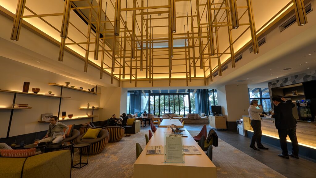 The lobby offers free soft drinks and alcohol from 11:00 to 8:00. Every day. We tried the apple soda, then went back into the train station and adjacent mall to look for lunch.