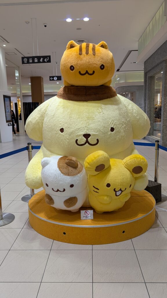 It said there was a dining area on floor 6, so off we went. I saw giant cute stuffies- first sign of Japanese cute culture that I’ve seen.
