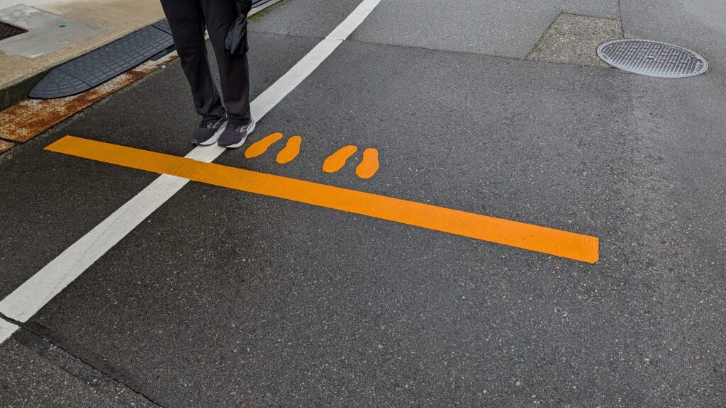 We have no idea why there are footstep spots in the road. Keith accused Kristine of doing it wrong. She said she was waiting for two friends.