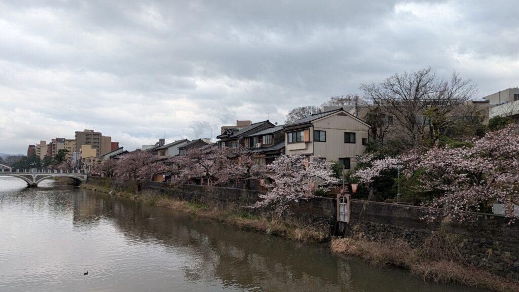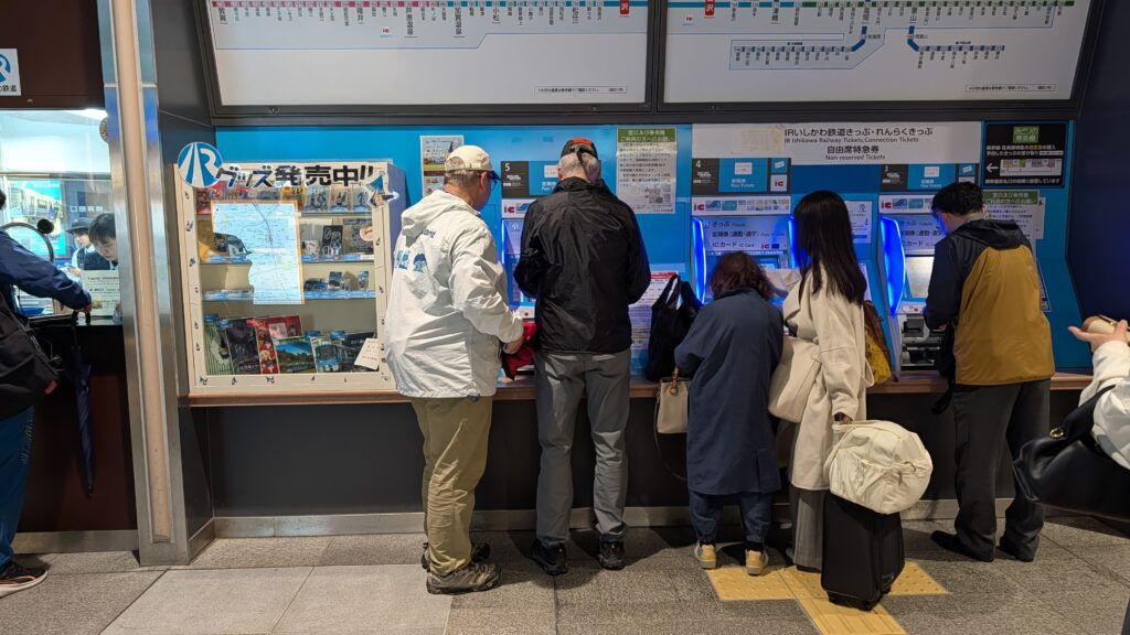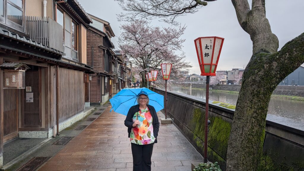 We took two different trains from Kyoto to Kanazawa this morning. It was great to see the countryside – which had only a few spots without houses. The clouds were flirting with the mountains, but I could never get a good picture. I gave up trying and just enjoyed it.