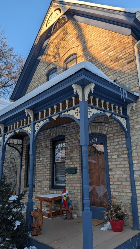 Savannah and Samantha (and their daughter) moved to a new home (to them) on Milwaukee Ave. It is part of an historic several blocks that have the houses facing each other with no street between them. Cars access parking lots behind the houses.