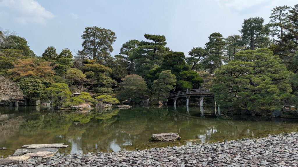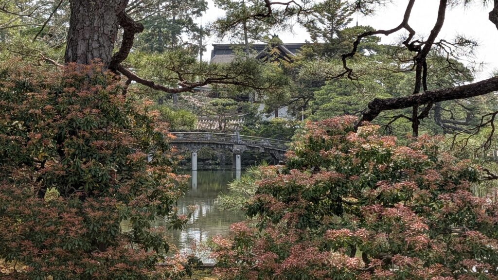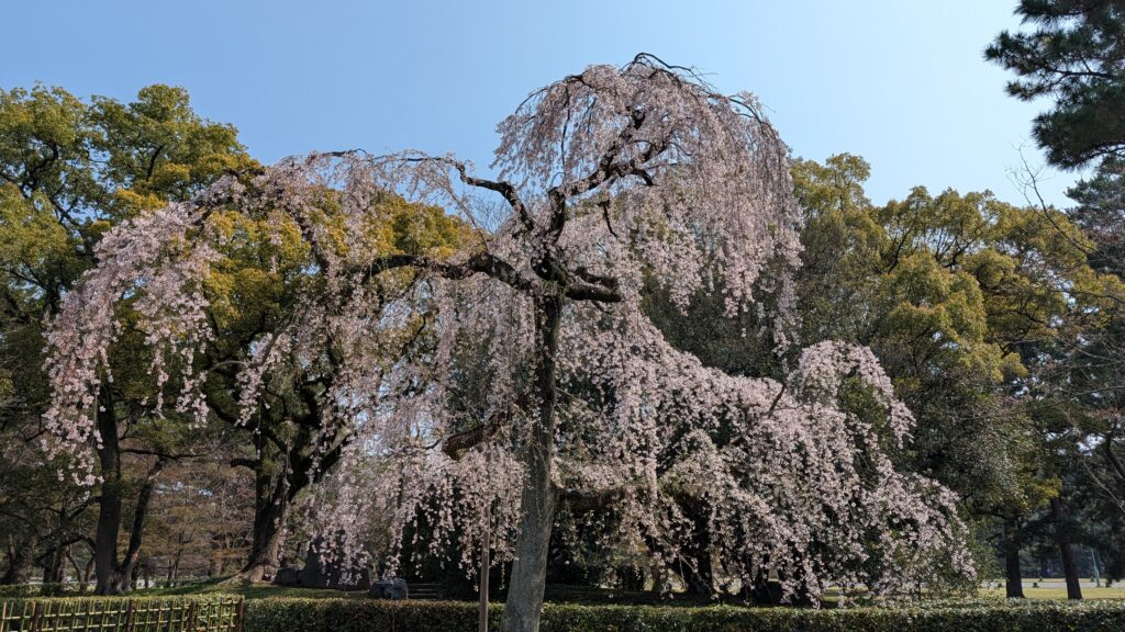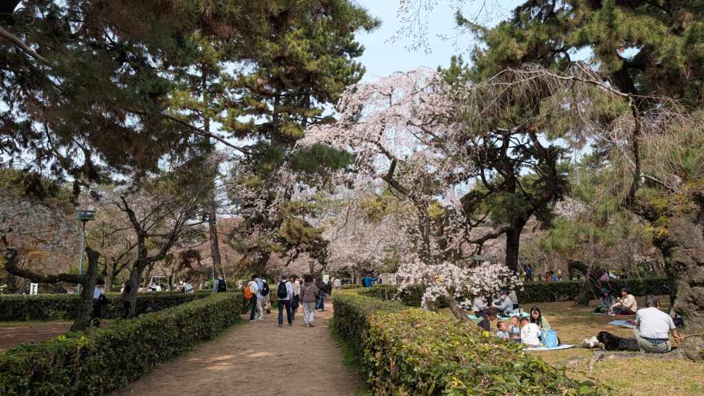 This morning we went to the Imperial Palace here in town. It was built circa 745, and rebuilt several times in the intervening thousand years (pesky fires) until the emperor moved to Tokyo in 1869. The cherry blossoms are making everything look like it needs to have its picture taken.