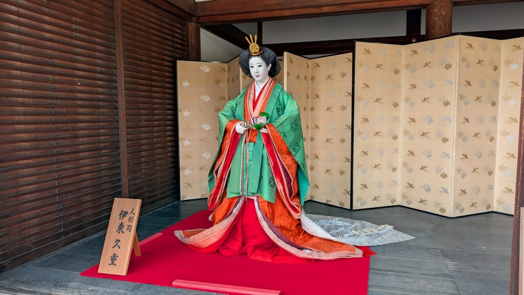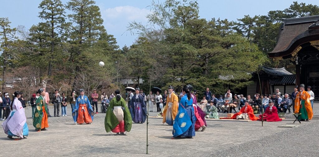 The POTD is of a demonstration of a game called Kemari. The outfits were the best part – those and the emperor from Mulan standing in the corner watching. It is basically hackysack with a bigger ball. Fun to watch. And there were chairs.
