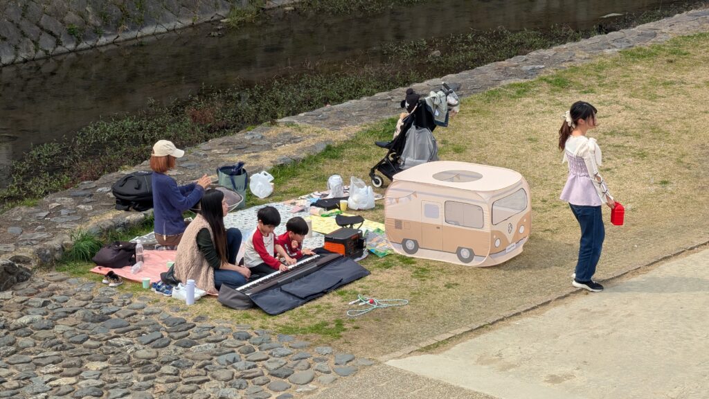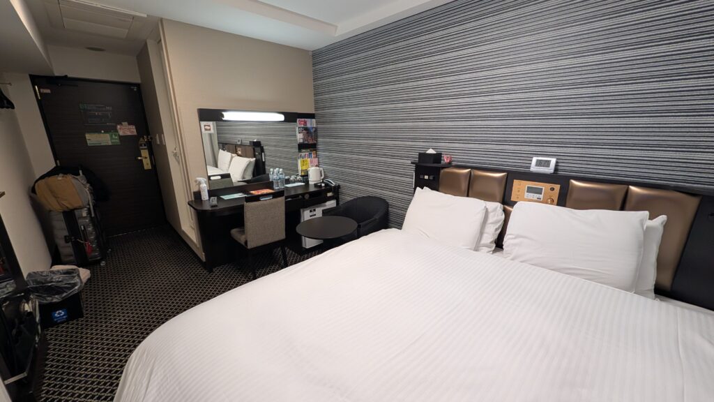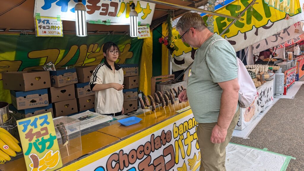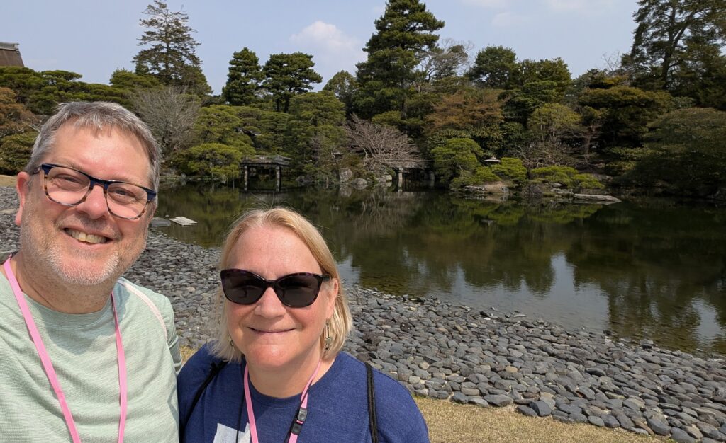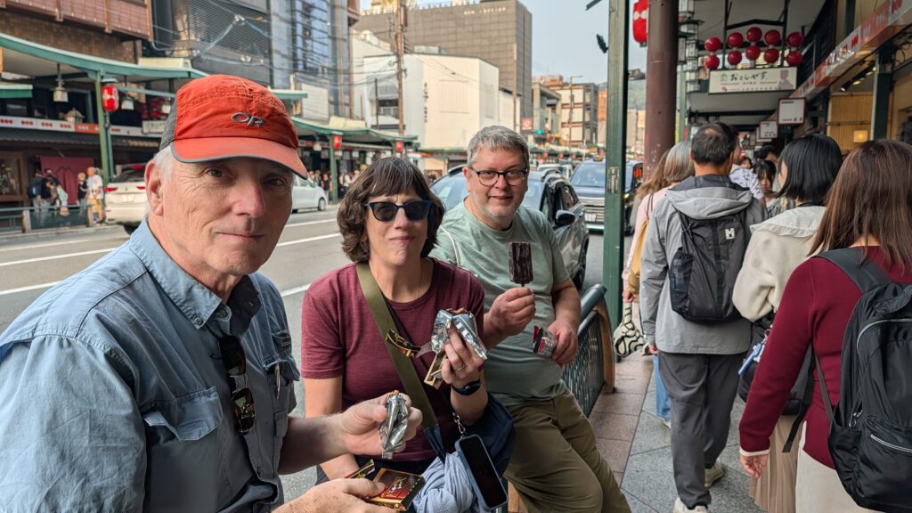 Our room last night had mats on the floor for sleeping, a low table to use from the floor, a common bath area on the lowest level, cold water-only tap in the sink, and a toilet that spent about 4 really loud minutes filling the tank after flushing. We decided that it was fun to “camp” on the floor one night, but we moved hotels tonight (leaving Kristine and Mike behind) (they are campers, afterall). We are really glad to have had the experience for one night. Our new hotel is fancy. We appreciated curling up in the king-sized bed this evening as we tried to watch Monarch: Legacy of Monsters. We got to watch the previously (to remember the oh so much of season one) but it wouldn’t show the video for the new season, so we had to abandon it. We thought Godzilla was the perfect choice to watch in Japan!