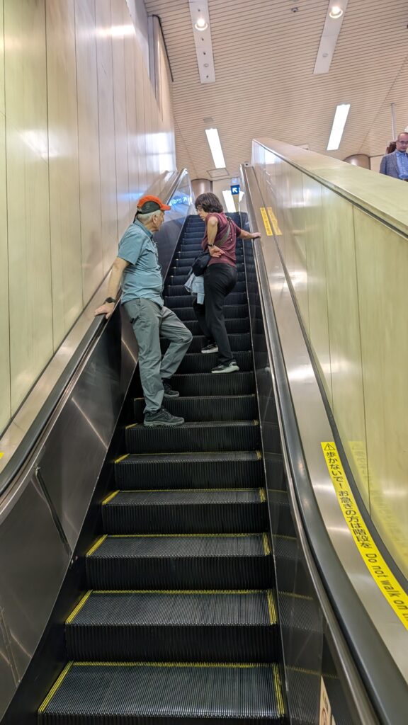 We got here with the information that we should stay to the left when walking. They drive on the left, they walk on the left. So far, that has been true, except when it isn’t. And that is pretty often. There are sometimes arrows on the steps in the stations – there doesn’t seem to be any rhyme or reason for left or right up or down.