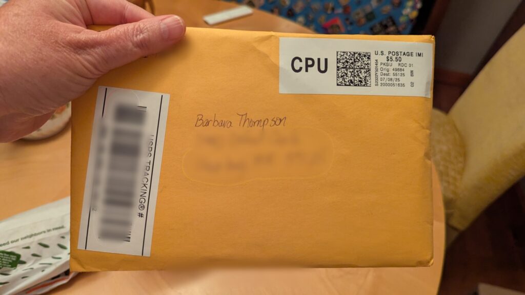 Huh. Has he never seen mail? There were some numbers – like 37% of people have received a personal letter in the past five years and 14% have written one. l knew I was ahead of the curve, because I know Jerry likes letters and I do write to him and Barbara now and again. I decided I would write a letter to them in the mail soon. Then JUST NOW, as we got home from brass band at 11pm, I said I had not taken a single picture today. Keith went off to get the mail – which he does every day – and came back with a personal letter for me! From Jerry and Barbara! So exciting that I took a picture! 🙂