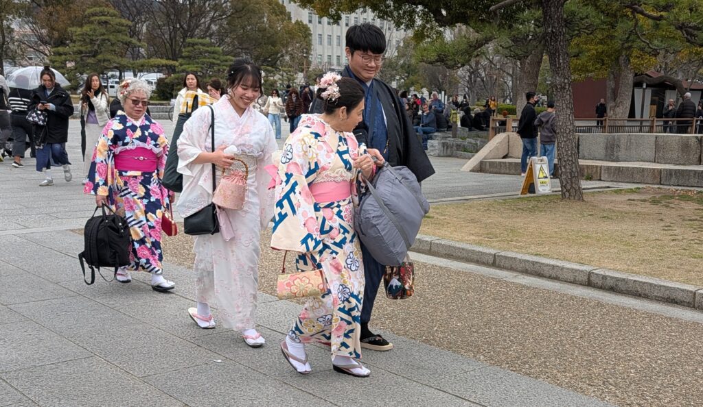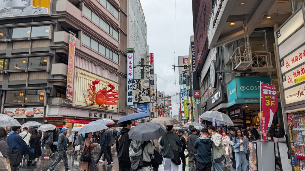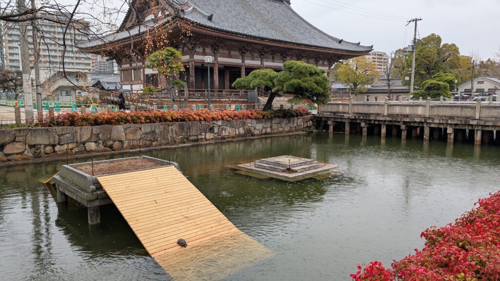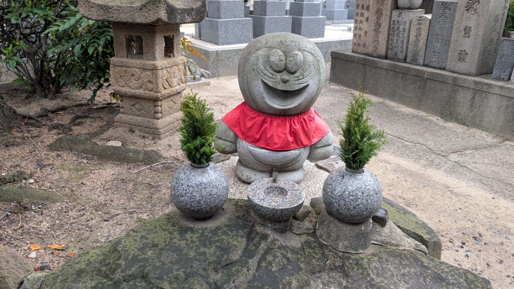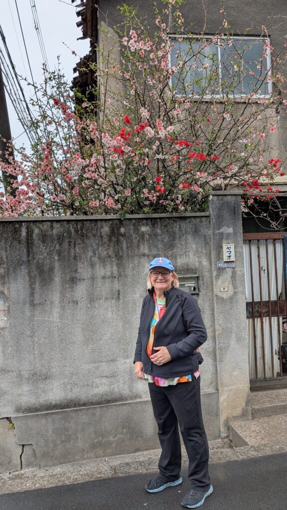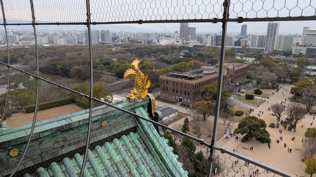 Breakfast at our hotel restaurant was served via a robotBreakfast was pretty odd. One undercooked egg, two small sausages, dry shredded cabbage, and some little bits of unrecognizable food items. Neither is us thought much of it.Osaka CastleThe castle walls were clearly built before the invention of the levelOr before any means of measuring stones to make sure they’re the same size and shapeLooking out at the city from the top of the castleThe five-storied pagoda at the Shitennō‑ji Buddhist temple, which was rebuilt eight timesMust be on their way to take wedding or engagement pictures at Shitennō‑jiThe Shitennō‑ji Temple is a large complexThe turtle pond at Shitennō‑jiOne of the Shitennō‑ji gates, this one with what looked like two genies, a red one and blue oneI can only guess what’s happening here… maybe what happens when you try to take a picture down the well at Shitennō‑ji, but have the camera set for a selfie Our maybe trying to take a picture of the ceiling of the wellThe entrance to a cemeteryThese cemetary statues were dressed upThe best thing at the cemetery Every now and then you come across beautiful plum treesOr cherry treesThis department store has a large ride in frontGiant Pokemon cards on the side of a buildingThese vending machines are everywhere along the streetsTakoyaki is deep fried octopus, as clearly explained by this signTsūtenkaku (“Tower teaching heaven”)I don’t know what Mike is whispering to this guyMany different flavors of kitkat barsTrying to figure out trains