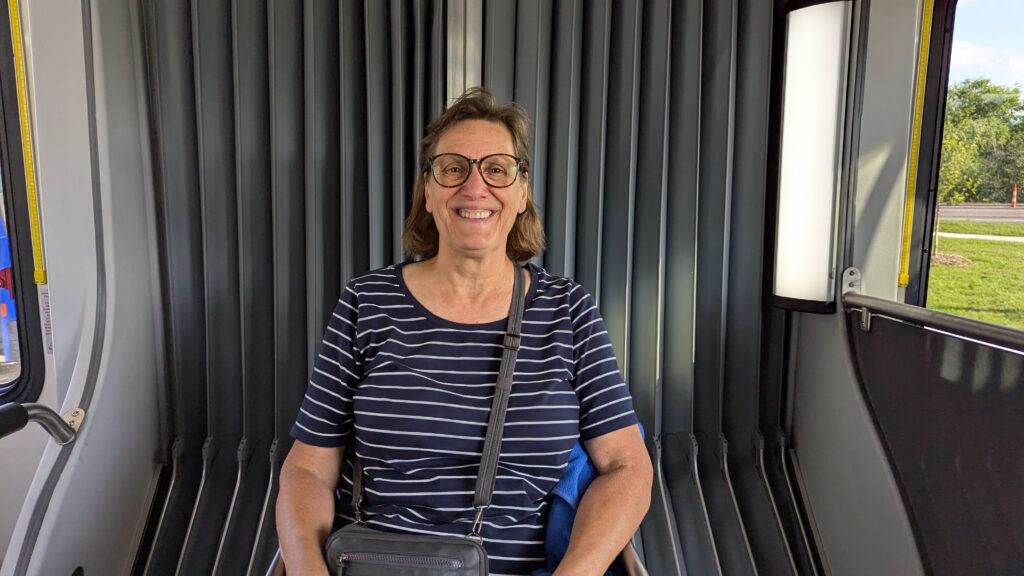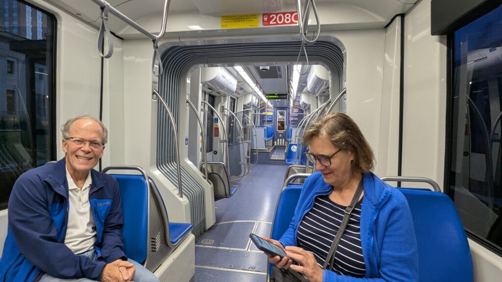 We stepped out of the building and the light rail was right there. We got a ticket, which was also good for the bus (who knew?! Sue and Peter!), and got on the train. We went one stop to the bus stop. Ha! Just clever us!