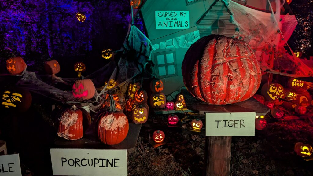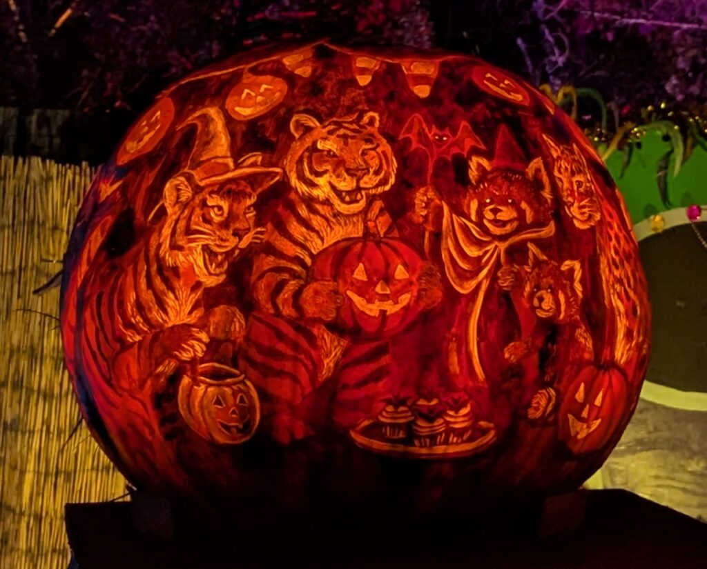 Here are a couple of the punkins carved by the zoo animals themselves.