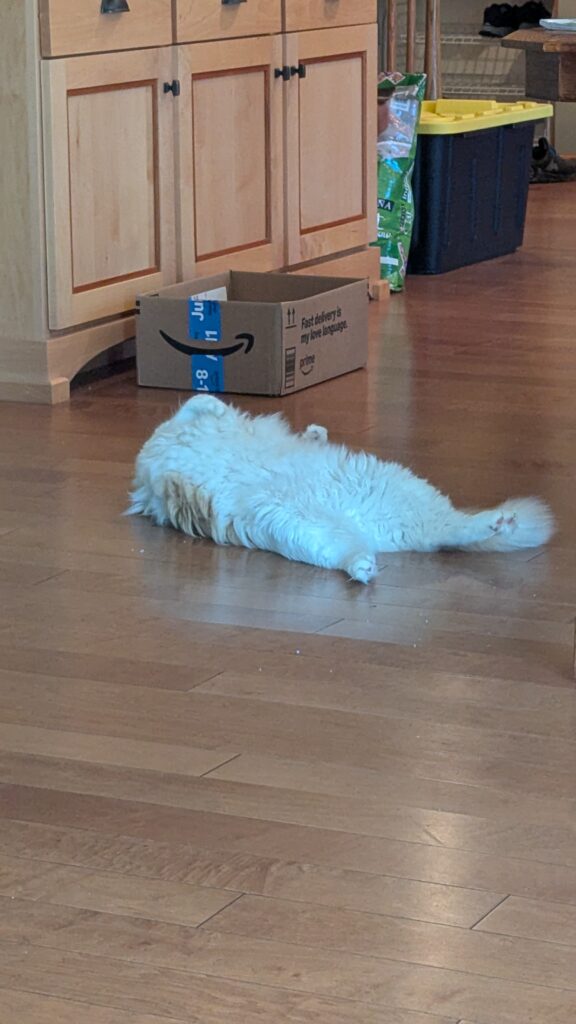 The kitties are getting comfortable here at Gramma and Grampa’s house.