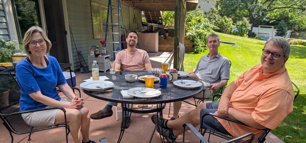 Last week we went to Jack Doyle’s Irish Pub and this week we had lunch with the real Jack Doyle. Yay. He is visiting his parents from San Francisco and we were lucky enough to have lunch with them today. Home-made food! We hadn’t gone grocery shopping yet, so this was our first real food in three weeks. It was terrific! Jack is working, so we got a regular lunch time with him and then spent hours catching up with Mark and Sue. Lovely.